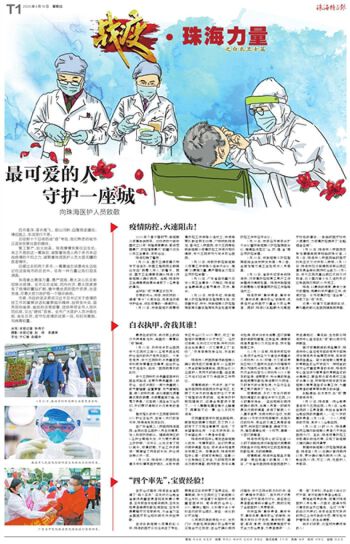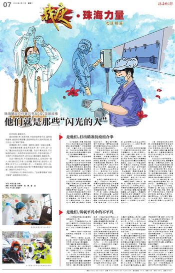 珠海特区报《战疫珠海力量》分医院篇、产业篇、镇区篇等,通过漫画形式展示珠海各界的战疫力量。
