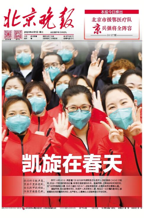 北京市援鄂医疗队医护人员回家,享受民航界最高礼遇。北京晚报《凯旋在春天》27个版向医疗队表达敬意。