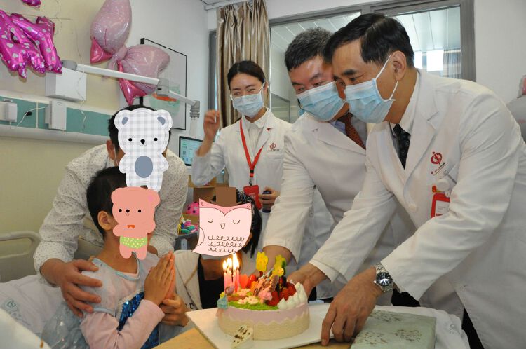 2020年4月29日上午,在中山七院消化二科安宁疗护病房里,院领导和医护们为小患者圆圆举行了一场生日会