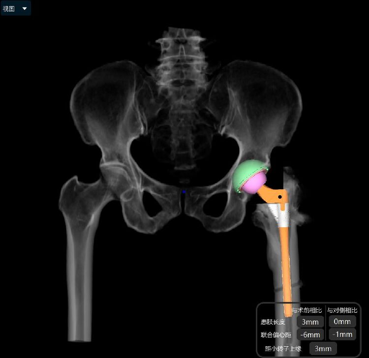 因此,他们需要在术前制定精准的手术方案。可问题来了,长久以来,国内骨科医生缺少精准的术前规划工具,只能用尺子、铅笔或胶片模板在X线片上测量,二维规划受胶片比例尺、患者体位等诸多因素影响,准确性难以得到保证。医生在手术中需要进行多次试模操作,判断植入假体的系列、型号与安放位置,极其依赖手术医生的临床经验,这也延长了手术时间。