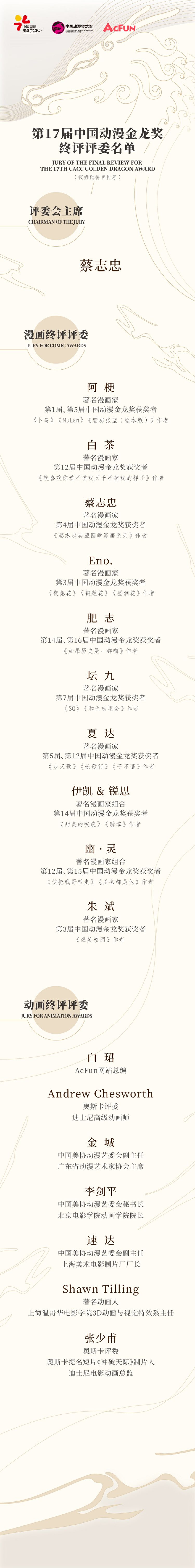 6月28日,第17届中国动漫金龙奖正式发布本届大赛终评评委名单,17人的名单彰显了市场化、专业化、国际化的特点。