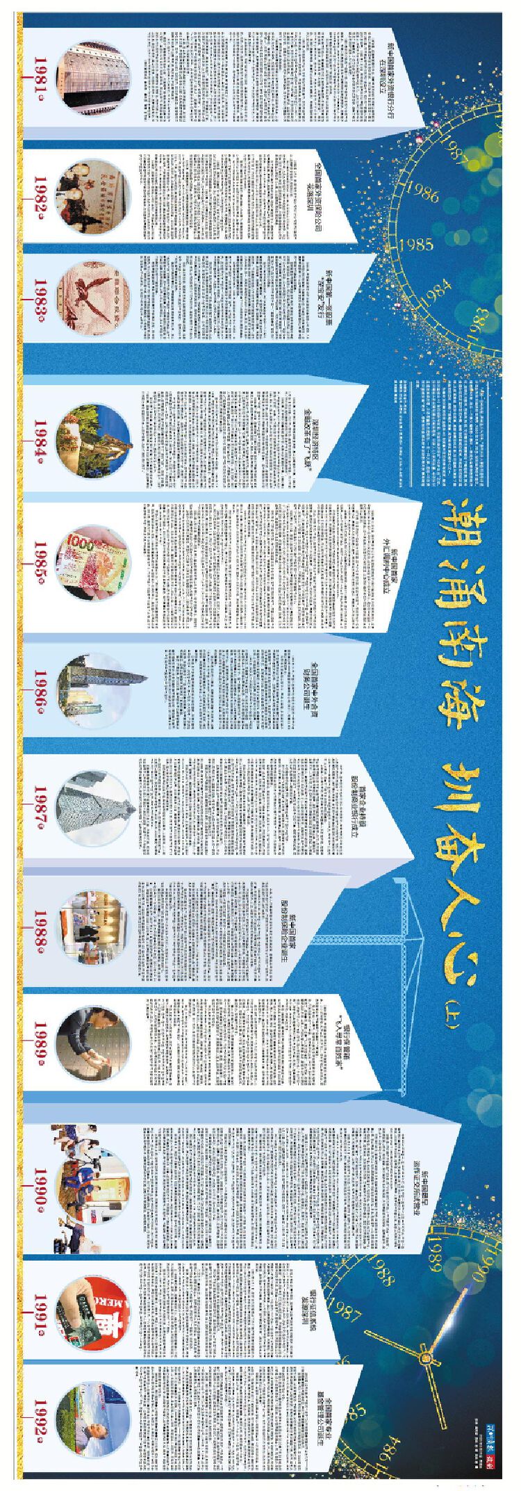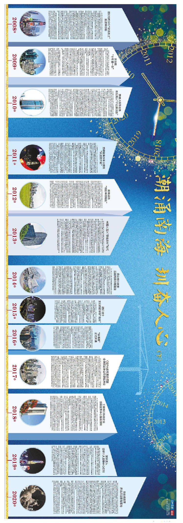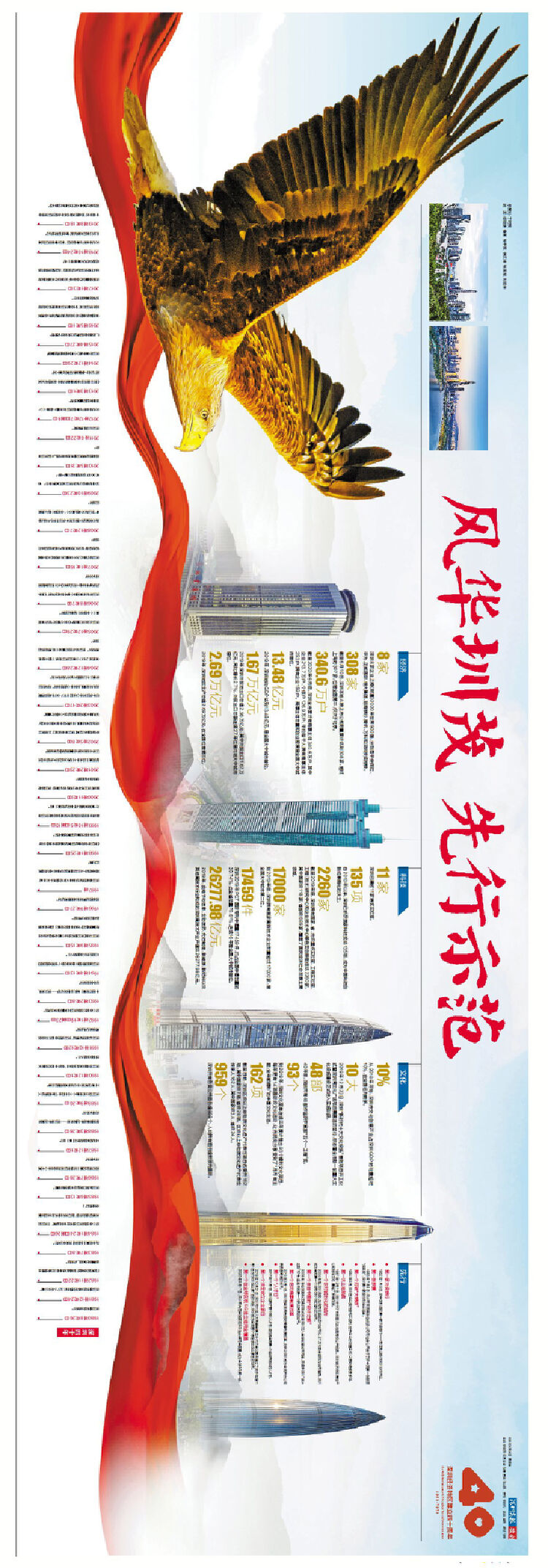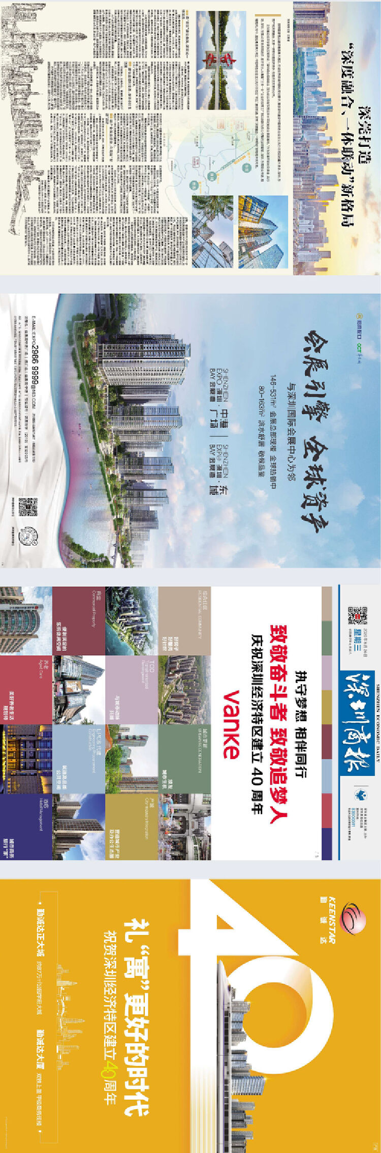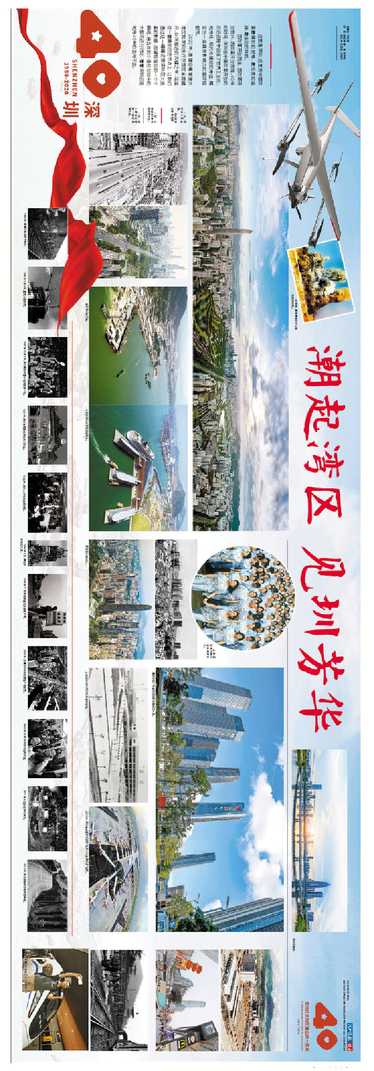 最吸引眼球的是,深圳商报的12个四联版长卷,分别以《风华圳茂 先行示范》《潮起湾区 见圳风华》《潮涌南海 圳奋人心》为主题,通过别具一格的四联通版版式、创意十足的版面设计,成为今天深圳纸媒的一大亮点,甚至在中国报业史上,都创造了一个空前的奇迹。