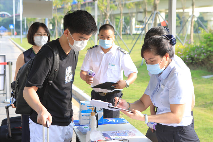 为了迎接新生到来,学校在深圳宝安国际机场T3航站楼到达厅、深圳北站西广场出站口提供免费班车接送服务。学校严格遵守国家、省市的秋季返校防疫工作要求,精心制定了一系列工作方案、应急预案,安排新生及家长统一从学校东门进入,并在校门口设立查验点,新生以及随行人员在进行体温检测和核查健康码后才可进入校园,为校园筑起一道坚实、安全的防护墙。
