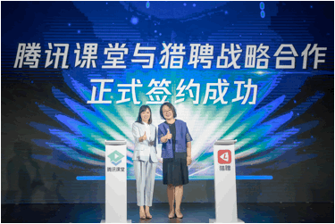 现场,腾讯课堂与国内顶级招聘平台猎聘宣布达成深度合作,腾讯教育副总裁、腾讯课堂总经理郑洁与猎聘副总裁江莉现场进行了战略合作签约仪式,并联合发布了互联网行业求职白皮书《互联网高薪求职宝典》。