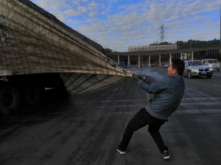 记者在深圳海吉星现场了解到,80后、安徽阜阳人韩国潘驾30吨蔬菜长车,从云南昆明一路奔向深圳海吉星。他的老乡陈勇冲过来帮忙卸货。韩国潘拽下盖在大车上的帆布。他笑着对记者说:“我有两个孩子,我要努力!”