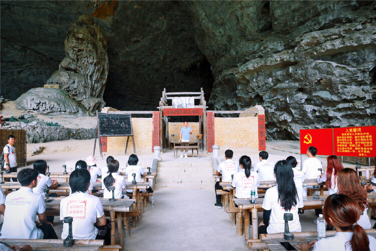 在东兰列宁岩,他讲述了韦拔群在贫乏的物质条件下学习先进的思想理念,传播马列主义、培养农民运动骨干、开展工农运动的故事。课后,商外学院队长张静雯动情地说道:“东兰红色文化