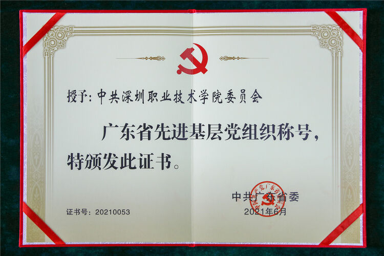在庆祝中国共产党成立100周年之际,广东省委决定对全省各条战线各个领域涌现出的优秀共产党员、优秀党务工作者和先进基层党组织进行表彰。深圳职业技术学院(以下简称“深职院”)党委被评为“广东省先进基层党组织”。