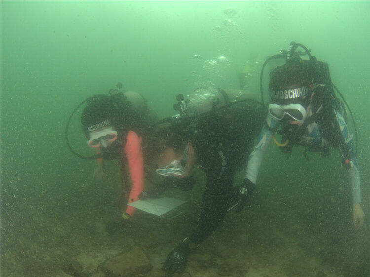 何灏浩(左一)与廖宝林(左二)一起在水下进行珊瑚礁普查