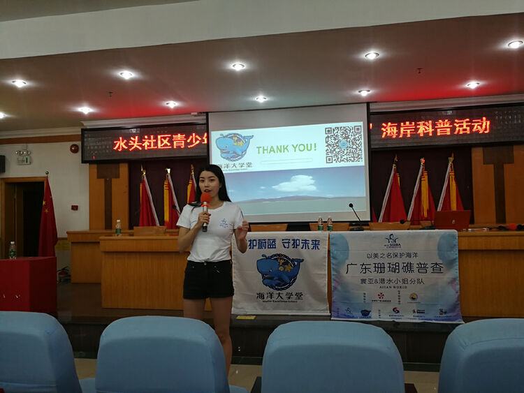 不仅如此,何灏浩还作为国际潜水小姐的代表为大鹏新区大鹏办事处水头社区上了一堂“守护蔚蓝”社区海洋科普课程,并前往全国首个珊瑚保育中心、广东海洋大学深圳研究院珊瑚保育中心进行“海龟认养”仪式。