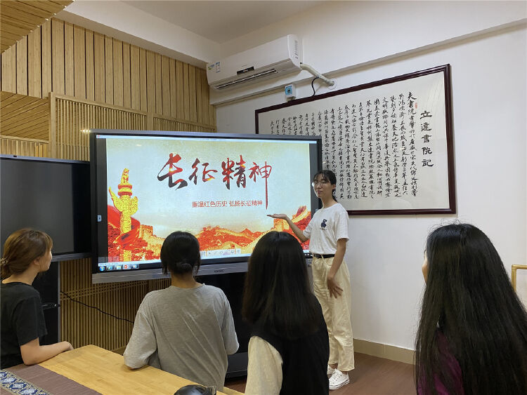 “金沙水拍云崖暖,大渡桥横铁索寒……”深圳职业技术学院商外学院党员小讲师罗婉方正在声情并茂地带着同学们诵读毛主席的《七律·长征》,为同学们讲解“巧渡金沙江”“飞夺泸定桥”“翻越大雪山”等红军故事。作为商外学院学生党支部的一名党员小讲师,她将长征期间的故事鲜活地呈现给同学们。