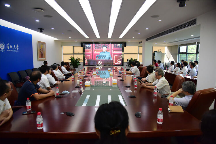 深圳大学采取集中与分散相结合的方式,组织师生通过电视、网络、手机等多媒体平台收听收看大会直播。学校党委书记、校长李清泉,党委副书记范志刚,副校长徐晨、李永华、张学记,各基层党委(总支)主要负责人、机关各部室主要负责人在汇元楼会议室集中收看大会直播;各基层党委(总支)、各独立科研机构设分会场认真组织师生收听、收看大会盛况;学生宿舍、饭堂等公共区域的电视、电子屏同步直播庆祝大会。
