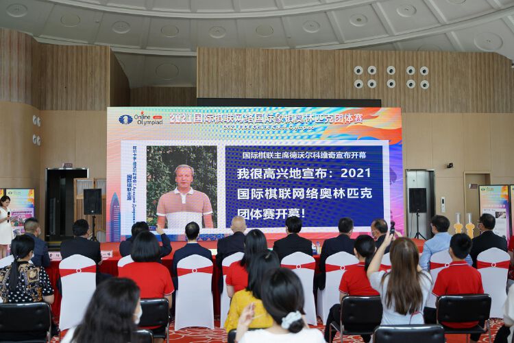 开幕式中,国际棋联主席阿尔卡季 · 德沃尔科维奇以视频形式进行致辞并宣布赛事正式开幕,他说:“我代表国际棋联欢迎大家参加第二届国际象棋网络奥赛,这是一项全球棋手、棋迷都非常关注、喜爱的赛事。本届比赛我要特别感谢中国深圳给予的大力支持。”此外,欧洲棋联主席阿兹迈帕拉什维利、非洲棋联主席恩库贝、俄罗斯棋手卡尔亚金、荷兰棋手吉里等均发来视频贺词,向赛事的举办表示支持与感谢。