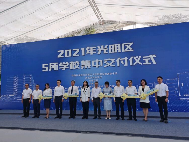 8月28日上午,光明区2021年5所学校集中交付仪式在中国科学院深圳理工大学附属实验高级中学举行。此次集中交付的学校包括,中国科学院深圳理工大学附属实验高级中学、凤凰城实验学校、玉律学校、东周小学和深圳市教育科学研究院实验小学(光明)。这5所学校将提供公办义务教育学位9180个、公办高中学位2100个。