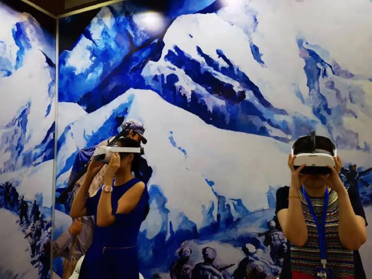 在 “重走长征路”VR体验展区,这是基于北理工首批国家一流本科课程建设成果建设的互动体验区。观众可佩戴虚拟现实眼镜身临其境地体验爬雪山过草地的艰辛场景,进一步坚定体验者坚持“不忘初心、继续前进,自觉做共产主义远大理想和中国特色社会主义共同理想的坚定信仰者、忠实实践者”的理想信念。