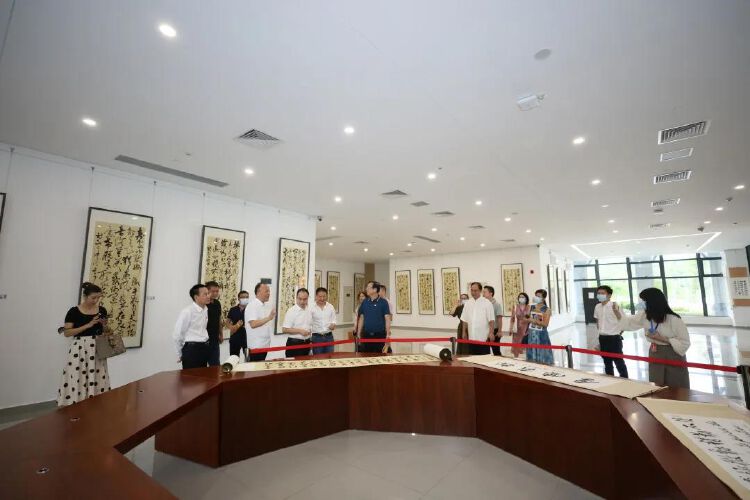 在院士书法展中,最叹为观止的是谢和平院士捐赠给深北莫的31.9米书法长卷《行书<庆祝中国共产党成立一百周年七一献词>长卷》, 作品采用中国传统宣纸,以书法长卷的形式呈现。笔墨流转,字里行间,充分表达出对党的忠诚与对祖国的热爱。该作品已被学校收藏,仅在文博会期间展出。