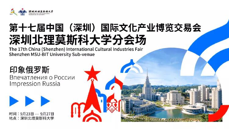 9月23日至27日,深圳将进入文博会时间。经第十七届文博会组委会评选认定,深圳北理莫斯科大学(以下简称“深北莫”)被列为第十七届文博会分会场,成为全市67个分会场当中唯一高校分会场。文博会期间,深北莫分会场将以“印象俄罗斯”为主题开展12大板块、27项活动,让市民可以在深圳感受别具一格的俄罗斯风情!