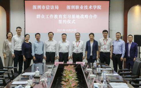 10月29日上午,深圳市信访局与深圳市职业技术学院签订《群众工作教育实习基地战略协议》。双方将利用各自资源和平台优势,加强群众诉求服务领域专业型人才培养储备,同时也为群众诉求服务工作注入新鲜活力,并提供理论与实践支撑。