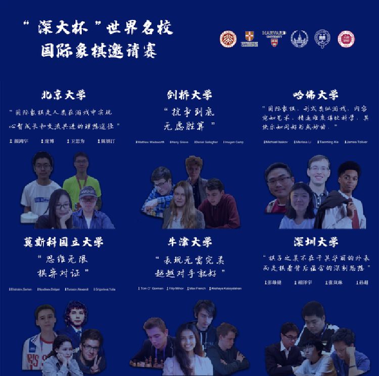 日前,“深大杯”世界名校国际象棋邀请赛在chess.com平台举行。北京大学、剑桥大学、哈佛大学、莫斯科国立大学、 牛津大学和深圳大学通过国际象棋,进行了一场特殊的交流。在为期两天的比赛中,6支代表队进行了激烈的争夺。最终,东道主深圳大学获得了一等奖。莫斯科国立大学和剑桥大学获得二等奖。牛津大学、哈佛大学和北京大学获得三等奖。