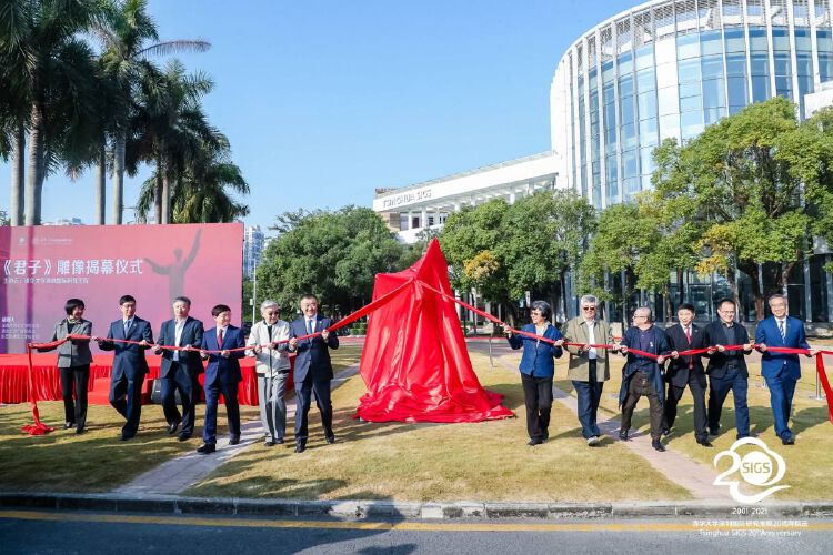 清华大学深圳国际研究生院执行院长高虹在致辞中表示,今年是清华在深圳办学20周年,学院经历了从初创到发展的蜕变,进入了全新的发展阶段。为进一步在深圳校园中加强对清华文化环境的营造,今年4月,清华大学深圳国际研究生院以清华校训作为出发点,设立了“《君子》雕像”捐赠项目,项目得到了深圳市清华大学校友会、清华大学广州校友会、东莞市清华大学校友会等校友会的大力支持,共计320位校友参与捐款,使得《君子》雕像得以在院内落成。