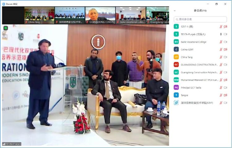 日前,深圳信息职业技术学院(以下简称“深信院”)同巴基斯坦旁遮普省技术教育和职业培训局、拉合尔阿拉玛·伊克巴尔省立技术学院、塔克西拉省立技术学院、费萨拉巴德农业大学以及广东建设职业技术学院、甘肃培黎职业学院、甘肃山丹培黎学校联合举行了中巴现代双学历技术教育联合示范项目启动仪式暨推进中巴职业教育合作对话仪式。此次特别邀请巴基斯坦驻华大使馆政务参赞阿哈迈德·汗先生共同见证。