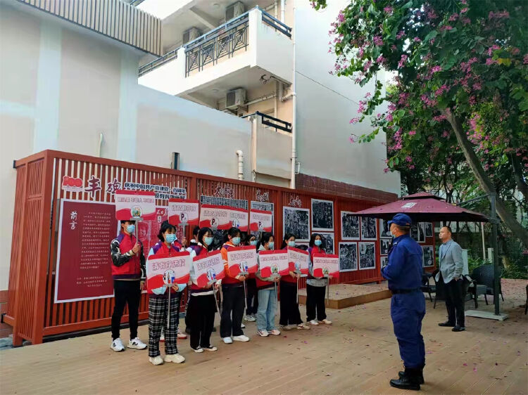 揭牌前,全体师生共同观看保卫处校卫队员与三尚书院学生义工队伍表演的军事队列操;揭牌后,与会人员参观了“丰碑•庆祝建党一百周年红色人物主题作品展”,在红色版画的熏陶中学习工匠精神,坚定了自己扎根本职工作、爱岗敬业、追求卓越、平凡中见证伟大的决心。