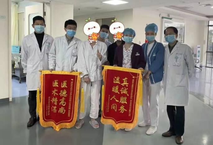 术中,发现王先生长期十二直肠扩张,局部充血红肿发炎,导致肠壁菲薄,与周围粘连严重,分离稍有不注意将损坏肠管及周围重要组织,因此,手术团队谨慎认真,经过治疗团队2个小时的不懈努力,终于顺利完成手术。最后得以如期出院,在春节来临前,如愿踏上了归乡的火车,临行前专门为救治团队送来了锦旗。