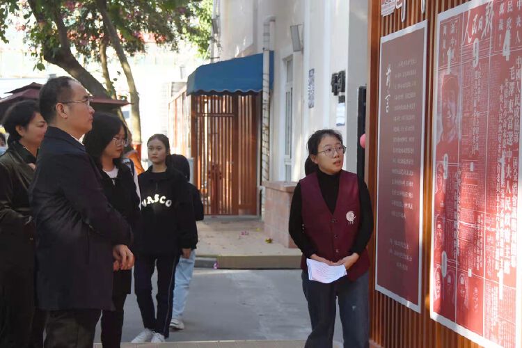自红色宣讲团成立后,这支小小队伍就常常在午休时、晚饭后于学生宿区门口、书院红色版画展览前背诵解说词、演练解说场景。陈永乐曾宣讲活动中为校领导讲解红色版画,她说:“在宣讲活动中,我不仅提升了自己的能力,了解了更多的党史知识,同时,也了解了木面木刻和木口木刻专业版画知识,拓展了自己的知识面……希望未来在宣讲团可以让自己原本内向自卑的性格可以变得自信大方。”