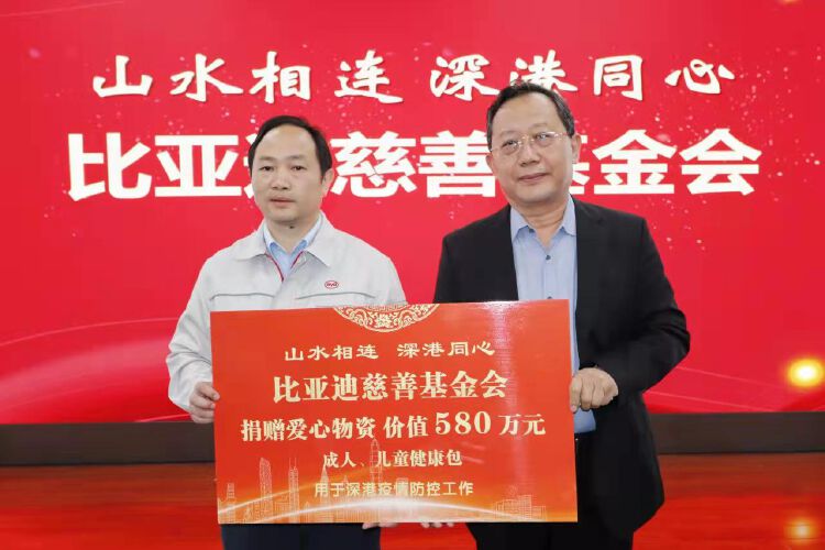 比亚迪慈善基金会捐赠价值580万元的防疫“健康包”。