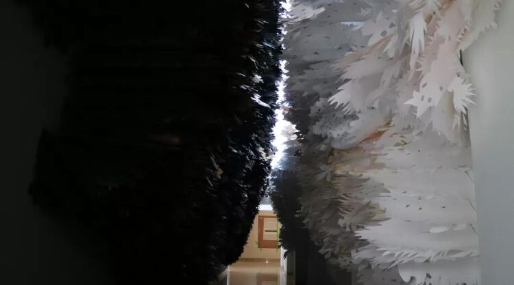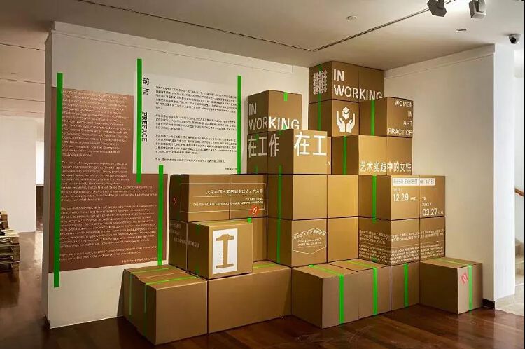 特别值得一提的是,展览在布展上也别具匠心,展厅的拐角处堆满了象征“工作”的标准化包装箱,其中打开的一个箱子,则预示着一个章节的开始,展览的展签也以购物小票的形式出现,处处体现“在工作”的主题。主办方介绍,在全球疫情期间,艺术家、策展团队、美术馆通过线上合作等形式促成了展览的实施,既回应“在工作”的展览主题,亦展现了海外华人女性艺术群体新的工作方式。