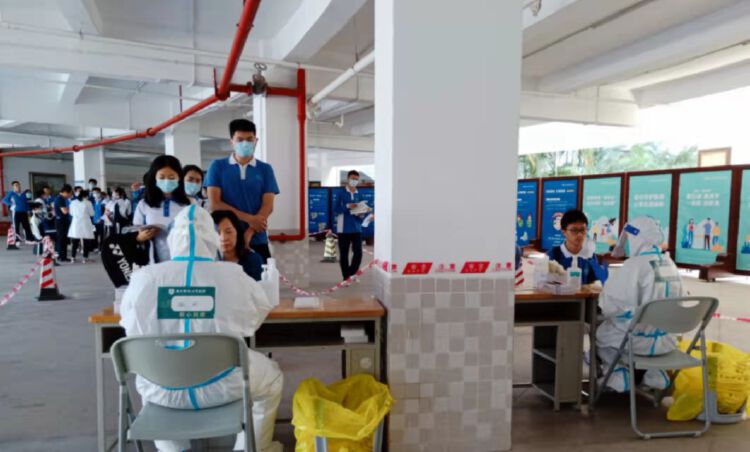 据了解,自”0215″疫情以来,根据疫情防控统一工作安排,南方科技大学医院承担了深圳实验学校高中部、深圳市第二高级中学两所学校的核酸采样任务。南科大医院接到任务后迅速组建由经验丰富的骨干医护组成的采样队伍。为确保高效完成采集任务,各相关科室工作人员提前跟学校联系沟通,严格按照疫情防控要求,从场地选取、现场布置、感控措施等方面就与学校相关负责人一起做好规划布局。