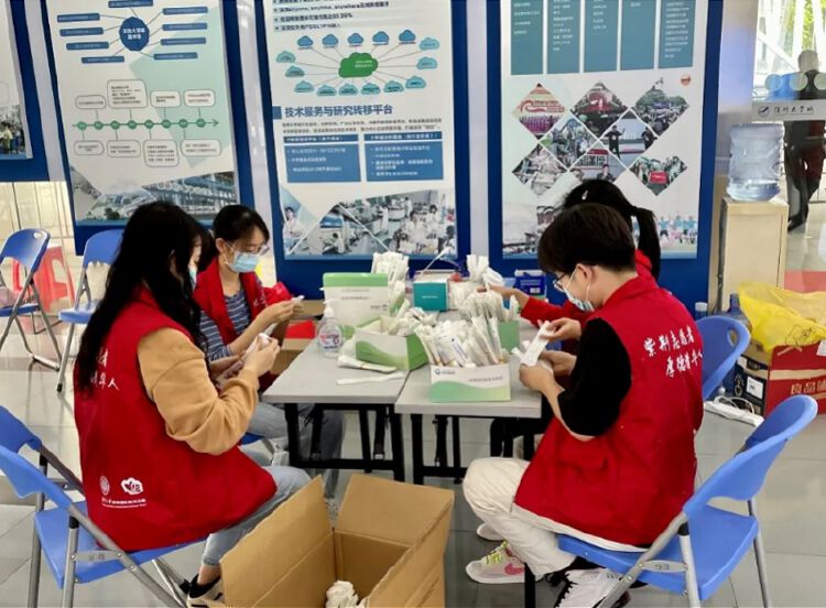 社区防疫志愿组同学在一线参与核酸志愿保障工作