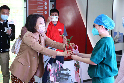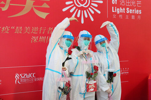 3月8日妇女节,一万朵玫瑰凝聚着千万深圳人的致敬和关心送到了深圳十个区奋战在抗疫一线的女性代表手中,为逆行的“巾帼英雄”送去节日的祝福,感谢她们在抗疫一线坚守岗位,守护市民群众的生命安全。