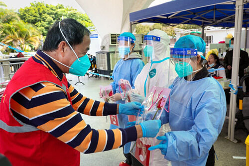 一朵朵玫瑰成为温暖深圳抗疫一线女性的“圳能量”。在福田区莲花街道金融新街的核酸检测点,正在做核酸检测准备工作的女医护人员卢泽荣收到玫瑰特别惊喜。她表示,社会的关爱让她更加坚定抗疫的决心,会认真做好核酸筛查,用速度和新冠病毒抢时间;在南山区蛇口街道,一直活跃在抗疫一线的红星志愿者队退役女兵们收到玫瑰花非常感动,她们退役不退志,成为抗击疫情的先锋队;“她们是守护生命的白衣天使,今天我们送枝玫瑰给抗疫女神”,在福田上沙社区,奋战在一线的下沉干部高小燕收到“送花使者”送来的玫瑰花,很是感动。她表示,暖心的玫瑰,冲散了她们连续多日工作的劳累,让她们元气满满,让她们的防疫工作更有动力。