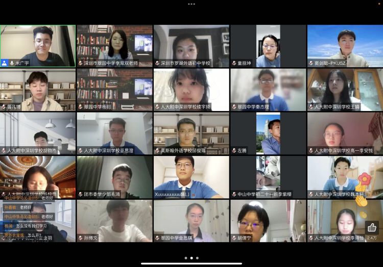 参与活动的有深圳市罗湖外语初中学校、人大附中深圳学校、深圳市翠园中学、深圳市坪山区中山中学和深圳奥斯翰外语学校五所学校的老师和同学们。整场活动在线人数超过1000人,总点赞数超70000次,同学们与授课老师积极互动,提出了诸多有趣的问题,讲座老师在线上予以了细致生动的解答。
