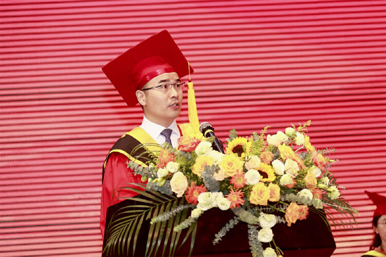 深职院党委副书记、校长许建领作了题为《行则将至 未来可期》的致辞。他表示,这三年,我们的伟大祖国正经历着极不平凡的发展变化,职业教育迎来了大踏步发展的新春天,学校更是交出了一份闪亮的成绩单。许建领说,临别之际,作为校长,最想以校训与同学们共勉,希望同学们“立德”“立业”“立志”,带着勇气和智慧出发,以“青年必当先”的姿态,驭风逐浪,辟出一路坦途。希望同学们一要以立德为先,涵养优良品德。无论身处“庙堂之高”还是 “江湖之远”,都能厚植“国之所需、心之所系”的爱国情怀。二要以立业为基,练就过硬本领。要“爱于心”,忠于自己的选择,热爱自己的事业,做到干一行爱一行;要“持于恒”,认清人生坐标后,以工匠之心追求工作极致,做到干一行精一行;要“慧于行”,敢于挑战常识常规,勇于冲破桎梏瓶颈,把“闯”的精神、“创”的劲头贯注到立业的全程,做到干一行优一行。三要以立志为本,永葆奋进姿态。要谋到位,在战略思考上“扣扣子”;要学到位,在工作学习上“钉钉子”;要干到位,在干事创业上“担担子”。