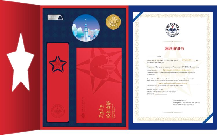 翻开礼盒,专属于每一位2022级新生的录取通知书映入眼帘。深北莫用这版中英俄三语通知书,欢迎每一个来自世界各地的新生,更是一份带新生解锁深北莫生活的邀请。