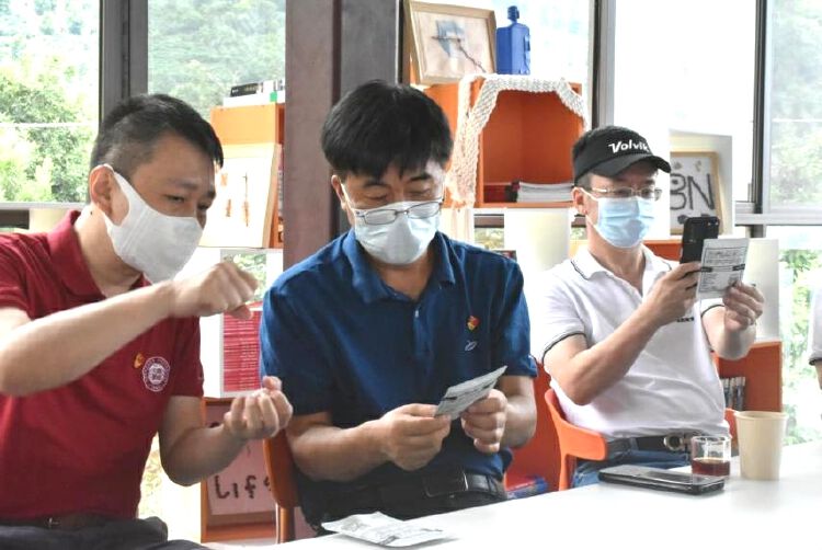 深圳大学汪永成副校长等领导品鉴时光益读“养蜂奶奶”团队研发的咖啡新产品(地点:云南省保山市潞江镇新寨村)