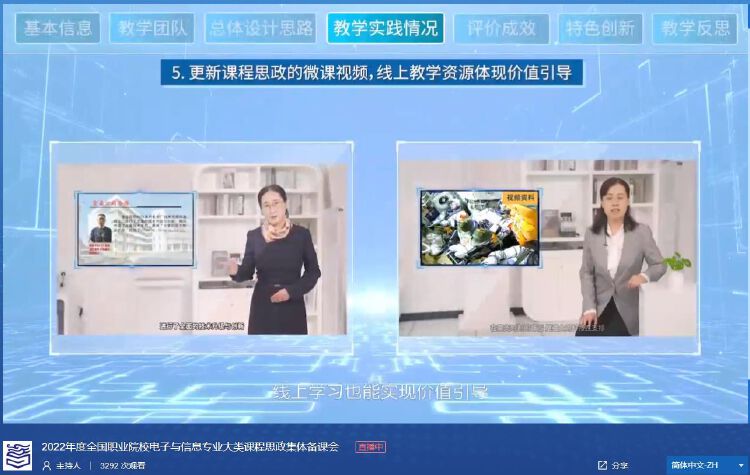 在线上集体备课环节,大会安排了深职院杨宏丽老师团队等7门课程进行说课和教学展示。常州信息职业技术学院院长眭碧霞、北京电子科技职业学院教务处处长管小清2位点评专家,围绕展示课程建设理念、总体设计、教学实施、评价与成效、特色与创新等方面进行了专业化点评。