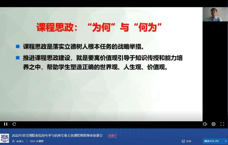 9月24日,全国职业院校电子与信息专业大类课程思政集体备课会举行。会议以习近平总书记对职业教育的重要指示和全国职业教育大会精神为指导,以深化对课程思政的理解与认识、凝练电子与信息专业大类课程思政建设特色为目的,围绕精准挖掘思政要素、科学开展教学设计等开展了集体备课与研讨交流。来自全国百余所院校的领导、一线教师、企业代表线上参会。