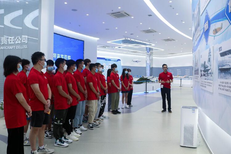 C919的一飞冲天,实现了我国的“大飞机”梦;AG600的首飞成功,则意味着我国自主研发的大型两栖飞机研制技术进一步成熟。AG600主要应用于我国森林灭火、海上救援等特殊需求,是国家应急救援体系建设急需的重大航空装备,堪称国之重器。8月24日,实践团队来到位于珠海的中航通飞华南飞机工业有限公司进行实地调研。同学们走进“全国爱国主义教育示范基地”AG600总装生产线,观摩了AG600的总装过程。
