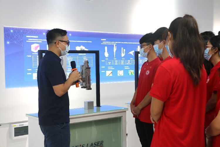 8月26日上午,实践团队来到深圳大族激光,在公司党办主任钟绪浪的带领下,走进生产装备车间,现场观摩绿光激光焊接机的焊接过程,感受到了激光的神奇魅力。通过观摩和聆听工作人员的讲解,同学们对精密激光的制造过程都惊叹不已,为国家科技的强势崛起感到无比骄傲。同学们感受到,大族激光的发展离不开兢兢业业的技术人员,正是他们几十年如一日的坚持、潜心研究和精益求精才有了今天的大族激光。