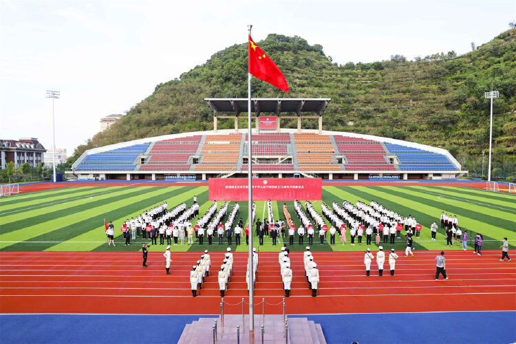 为庆祝中华人民共和国成立73周年,弘扬爱国主义精神,10月1日清晨,深圳职业技术学院(以下简称“深职院”)在留仙洞校区体育场举行升国旗仪式。