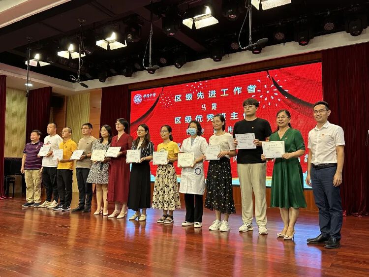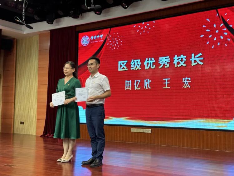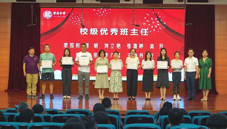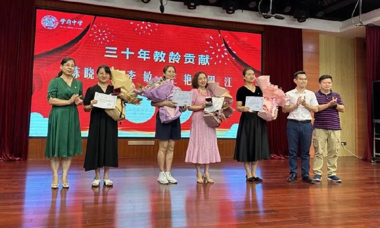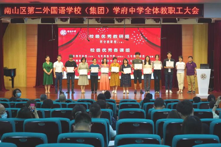 最后,学府中学进行了以“弘扬高尚师德,潜心立德树人”为主题的2021-2022学年评优评先表彰活动。并为教龄满30年的四位教师颁发了纪念金牌。