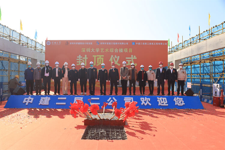 深圳大学校长、中国科学院院士毛军发,中建二局二公司董事长刘建钊,深圳市首嘉工程顾问有限公司副总经理潘多忠,深圳大学建筑设计研究院有限公司院长曹卓等出席仪式并致辞。深圳大学党政办公室、党委宣传部、计划财务部、后勤保障部、安全保卫部、艺术学部、建筑与城市规划学院等相关单位领导及参建单位代表出席会议。深圳大学副校长李永华主持仪式。