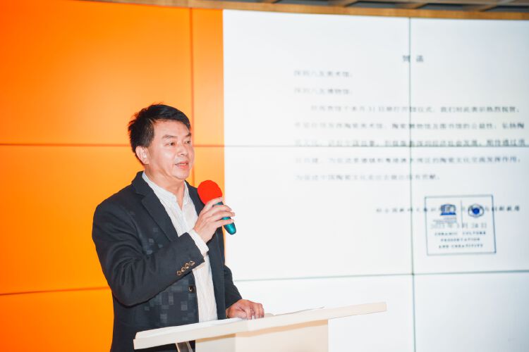 开幕式上,深圳八友之一、中国工艺美术大师裴永中宣读了联合国教科文组织世界联合会的贺信。深圳八友总召集人、深圳八友美术馆(城市书房、博物馆)负责人黄琥宣读了联合国教科文组织陶瓷文化保护与创新教席的贺函。
