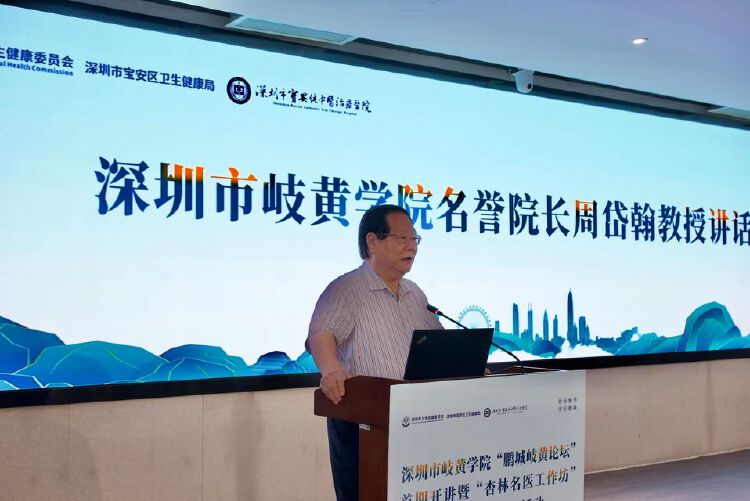 传承守正中医药精华,提升中医药人才素质,推动深圳中医药事业高质量发展。2023年5月10日,深圳市岐黄学院鹏城岐黄论坛首期开讲暨杏林名医工作坊首次义诊带教活动在深圳市宝安纯中医治疗医院举行。深圳市中医肿瘤医学中心主任、国医大师周岱翰教授受邀参加鹏城岐黄论坛,周岱翰教授获聘深圳市岐黄学院名誉院长。