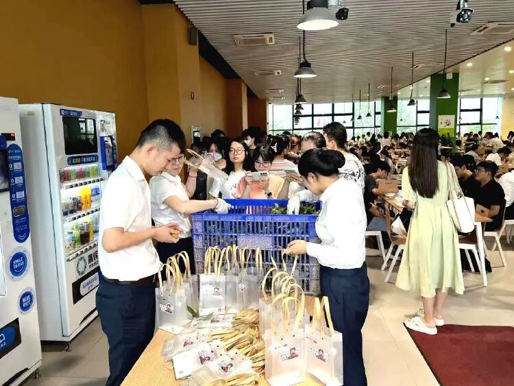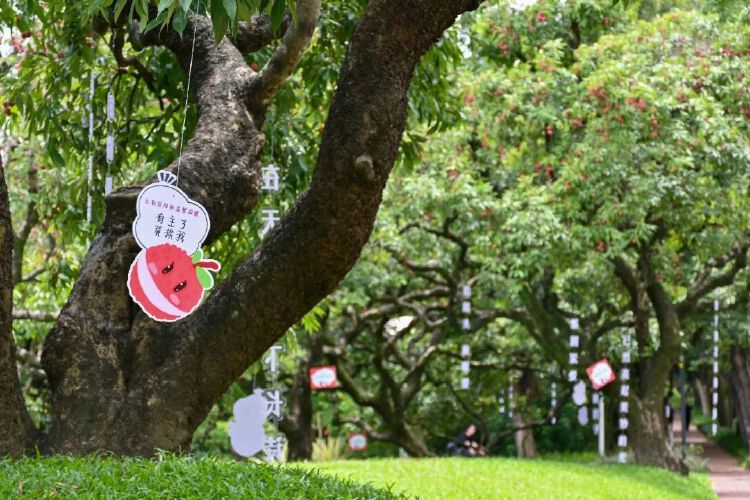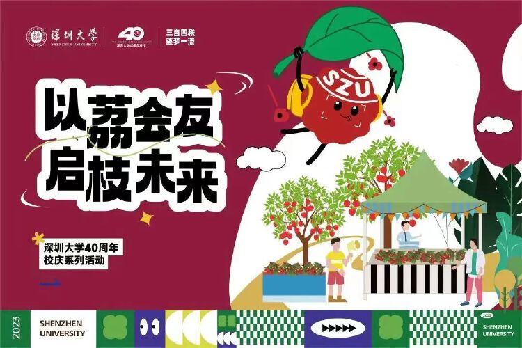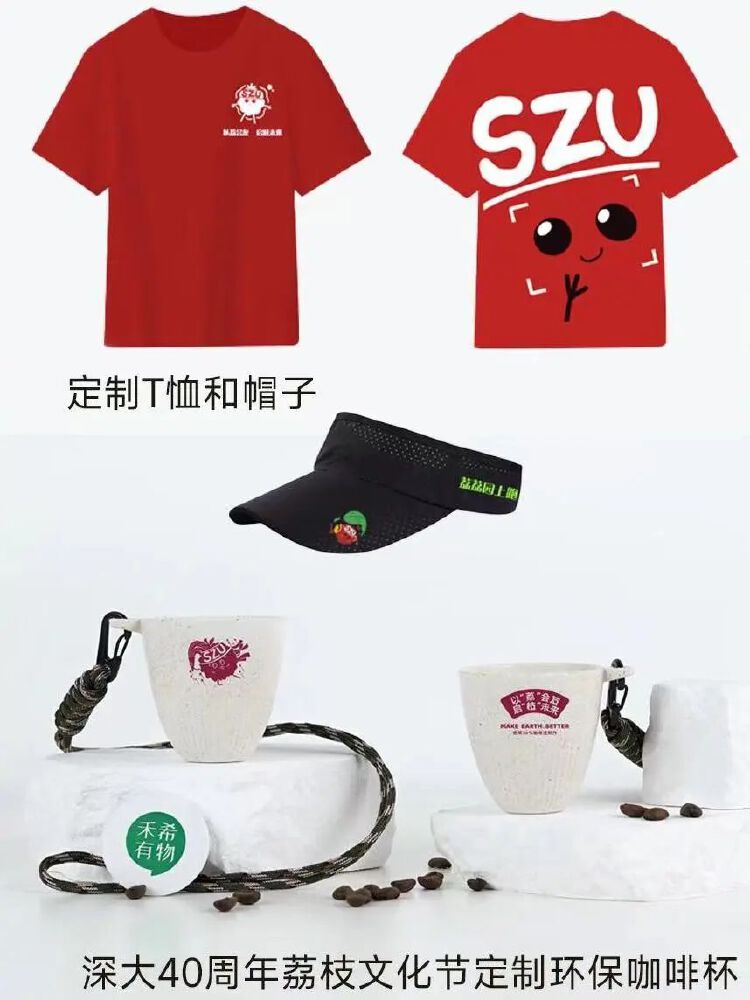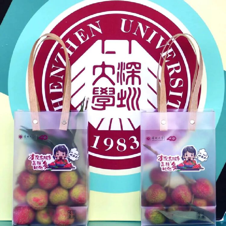 除了“请全校吃荔枝”的保留曲目外,深大今年的荔枝文创环保袋也火了。在40周年校庆之际,深大两个校区在派发荔枝活动中增添校庆元素,设计校庆荔枝节主题logo,定制专属环保纸袋、纸箱和文化周边产品,进一步丰富了荔枝节文化内涵。荔荔园上跑、丽园荔市、荔下问医、荔园知识知多少、洗星之夜……丽湖校区的“荔枝文化节”更是将荔枝玩出了文化味。