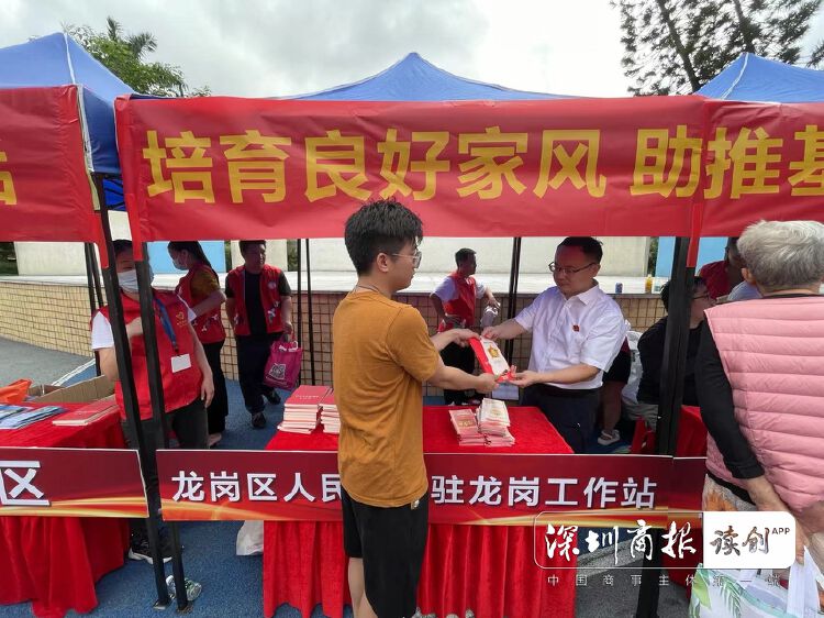 这是当天龙岗法院驻龙岗工作站联合龙岗街道司法所及相关职能部门,在五联广场开展的“弘扬优良家风,普及人民调解”主题宣传活动现场的一幕。法官现场面对面解答了群众关于民间借贷、房屋租赁、买卖合同纠纷等法律问题的咨询,宣讲了民事纠纷中当事人的权利义务以及人民调解、司法确认和诉讼等法律知识,向群众派发民法典、民事法律法规知识手册及普法宣传纪念品200余份。法官表示,工作站将积极联合相关部门做好诉源治理、人民调解和法治宣传等工作,充分发挥促进社会和谐稳定的作用,为基层平安创建多做实事、多做贡献。