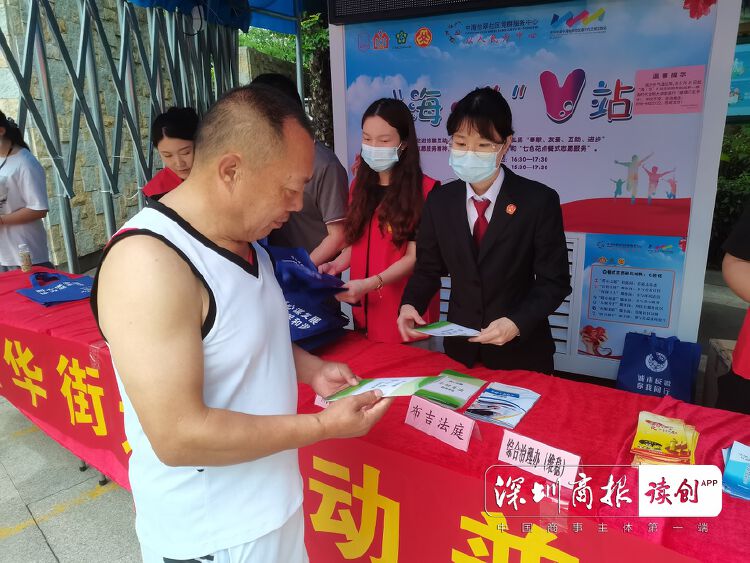布吉法庭联合吉华街道司法所、综合治理办等相关部门,在茵悦之生小区广场开展普法活动,通过有奖答题、派发宣传册等方式,向社区居民宣传民法典、劳动法等法律知识以及关于人民调解的知识。