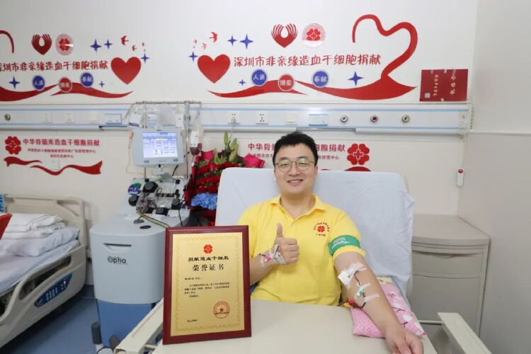2023年8月26日。在深圳市第二人民医院,血液顺着针管缓缓流动,经过血细胞分离机,分离出造血干细胞混悬液,剩余的部分又从另一端输回体内……共近6.5小时的血液采集,分离出234毫升的造血干细胞。而捐献者,是清华大学深圳国际研究生院2022级化学专业博士研究生赵庆如。他是全国第15907例、深圳市第636例造血干细胞捐献者。